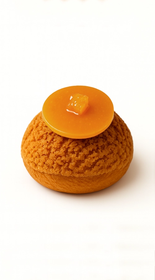 Chou garni d’un crémeux fondant à la clémentine de Corse, agrémenté de délicats cubes de clémentine confits..